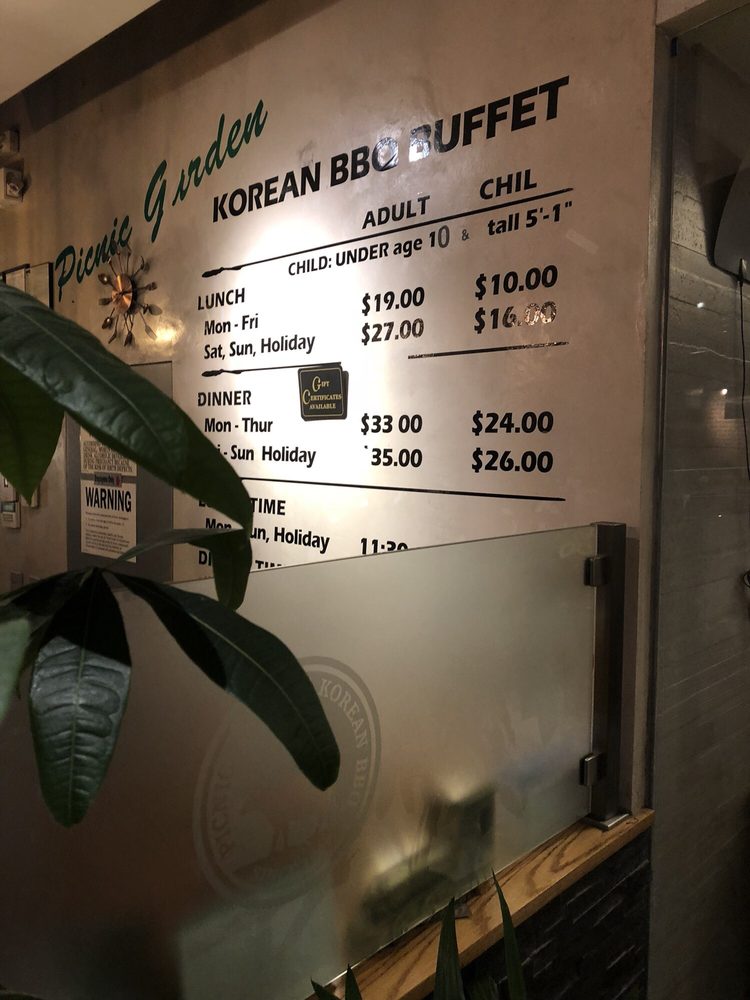 Located in Flushing, NY, Picnic Garden is a Korean BBQ buffet restaurant offering a wide variety of meats and side dishes. Customers praise the DIY grill at the table, allowing them to choose and cook their own proteins. Favorites include the beef kalbi, pork jowl, and Korean fried chicken. However, some customers mention the increase in prices over the years and automatic gratuity fees added to bills. The spacious venue provides a casual dining experience, perfect for groups and families. Picnic Garden also offers outdoor seating, waiter service, and happy hour specials. Overall, the all-you-can-eat buffet concept and unique flavors make Picnic Garden a must-try for Korean BBQ enthusiasts.